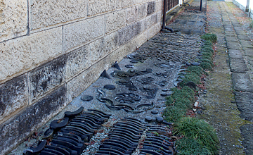 JR両毛線・東武日光線の栃木駅から歩いて10分、幸来橋のたもとの巴波川河畔に漆黒の板塀が見えてきます。江戸後期から木材回漕問屋を営んでいた塚田家の塚田歴史伝承館です。屋敷内の8棟の蔵は木材問屋だけにどれもノッポで、蔵には塚田家ゆかりの収蔵品が展示されています。趣ある庭園や建物も併せて楽しめます。